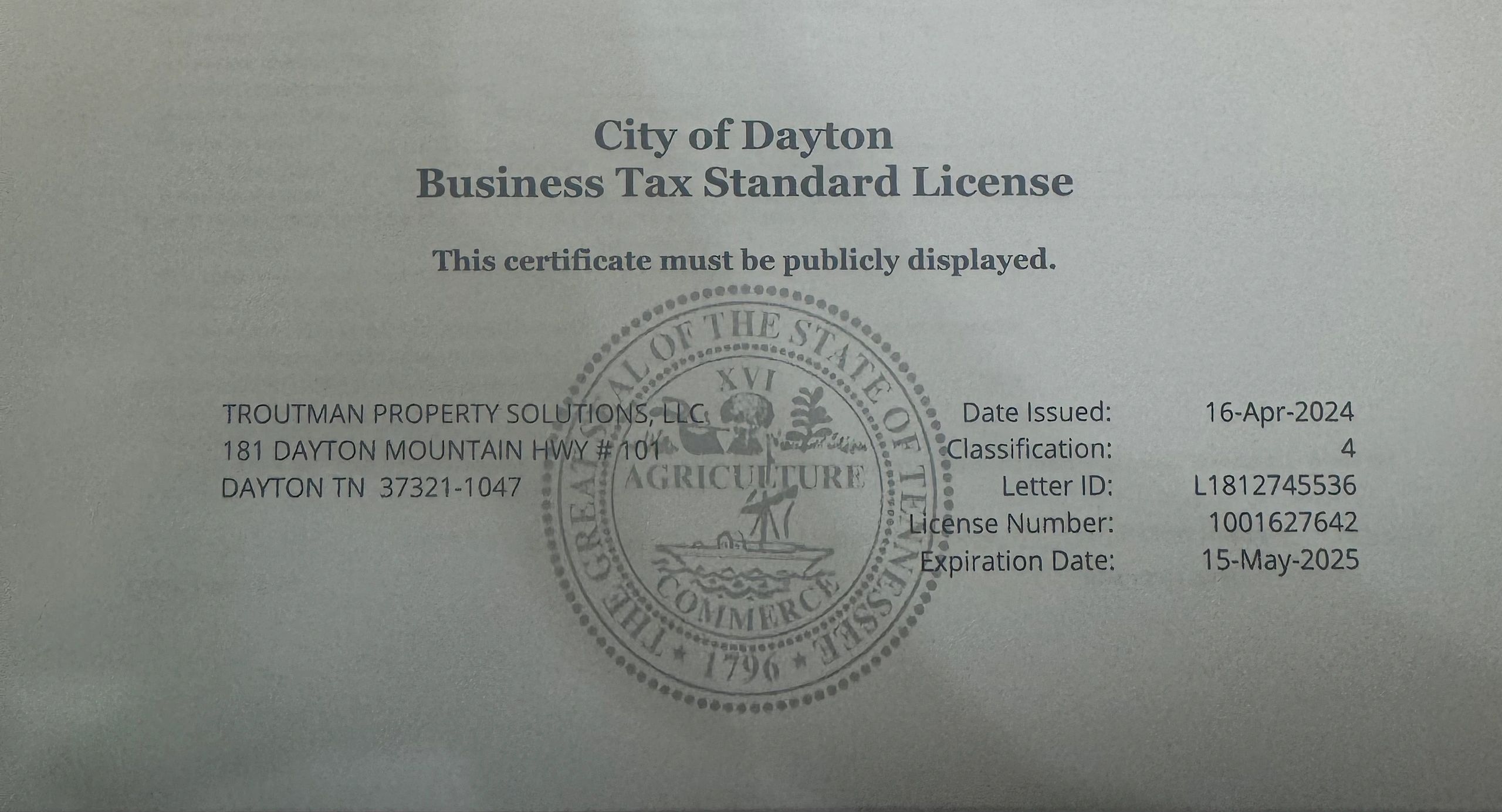 City of Dayton, TN Business License
